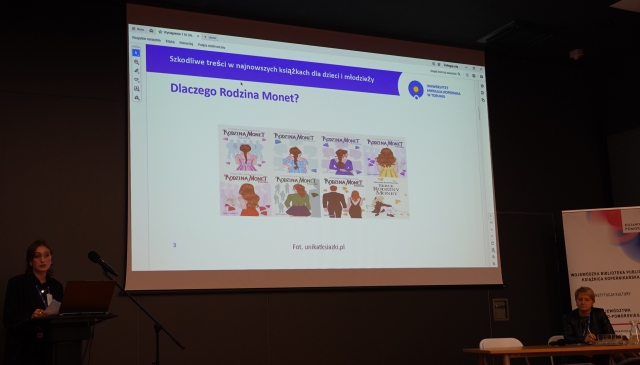 Prelegentka Maja Domaszk (UMK) wygłosiła referat Szkodliwe treści w najnowszych książkach dla dzieci i młodzieży. Posłużyła się przykładem popularnej serii książek Rodzina Monet, autorstwa Weroniki Anny Marczak. Domaszk zwróciła uwagę, że książka zawiera wulgarny język, obraz toksycznej męskości (mężczyzna rozwiązujący wszystkie problemy siłą), seksualizację dzieci i kobiet, szkodliwe podejście do zaburzeń odżywiania oraz nadmierny konsumpcjonizm.