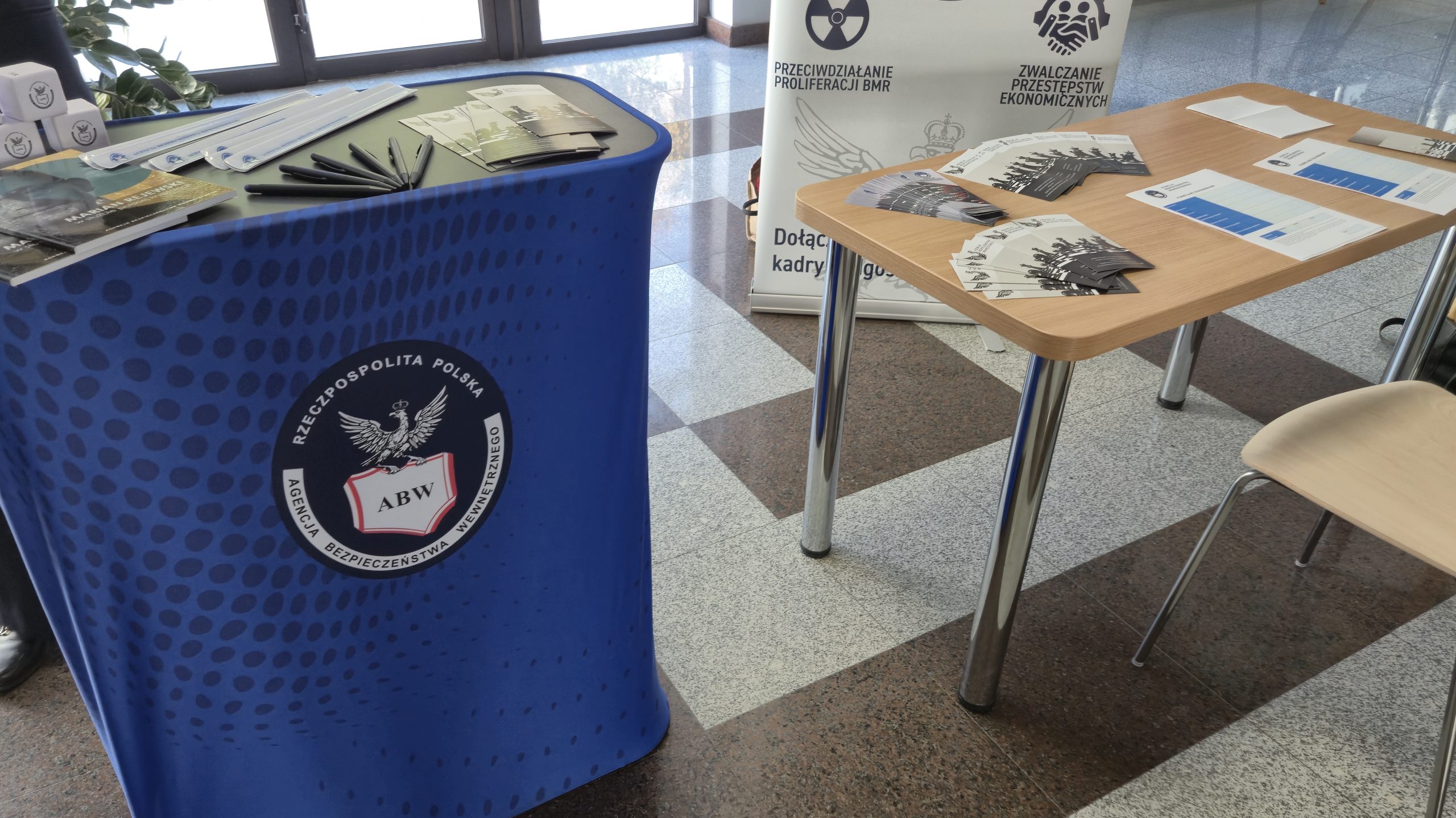 Oprócz wykładów uczestnicy wydarzenia mogli odwiedzić stoisko informacyjne Agencji Bezpieczeństwa Wewnętrznego, zlokalizowane na korytarzu wydziału. Funkcjonariuszka zajmująca się udzielaniem informacji przy stoisku opowiedziała o tym, jakie wymagania trzeba spełnić, aby zostać zatrudnionym w ABW: