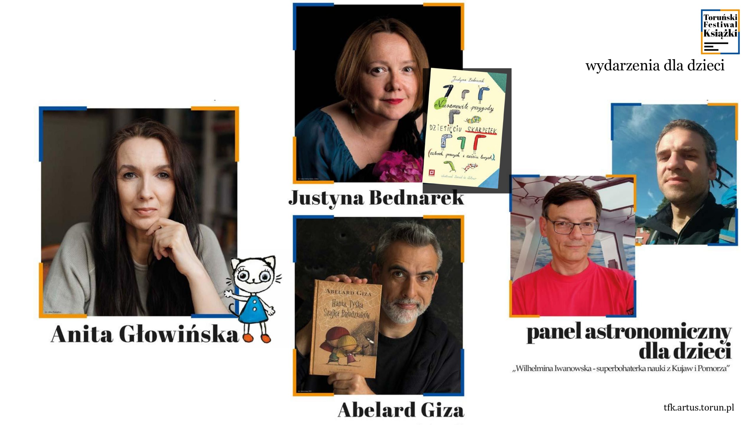 W programie znalazło się również miejsce dla najmłodszych czytelników. Czekają na nich spotkania z autorkami jednych z najbardziej poczytnych książek dla dzieci: Anitą Głowińską (m.in. seria „Kicia Kocia”) oraz Justyną Bednarek („Niesamowite przygody dziesięciu skarpetek”). Dla małych badaczy kosmosu przygotowano także interaktywny panel astronomiczny, podczas którego prowadzący przybliżą postać Wilhelminy Iwanowskiej – wybitnej astronomki związanej z Kujawami i Pomorzem.