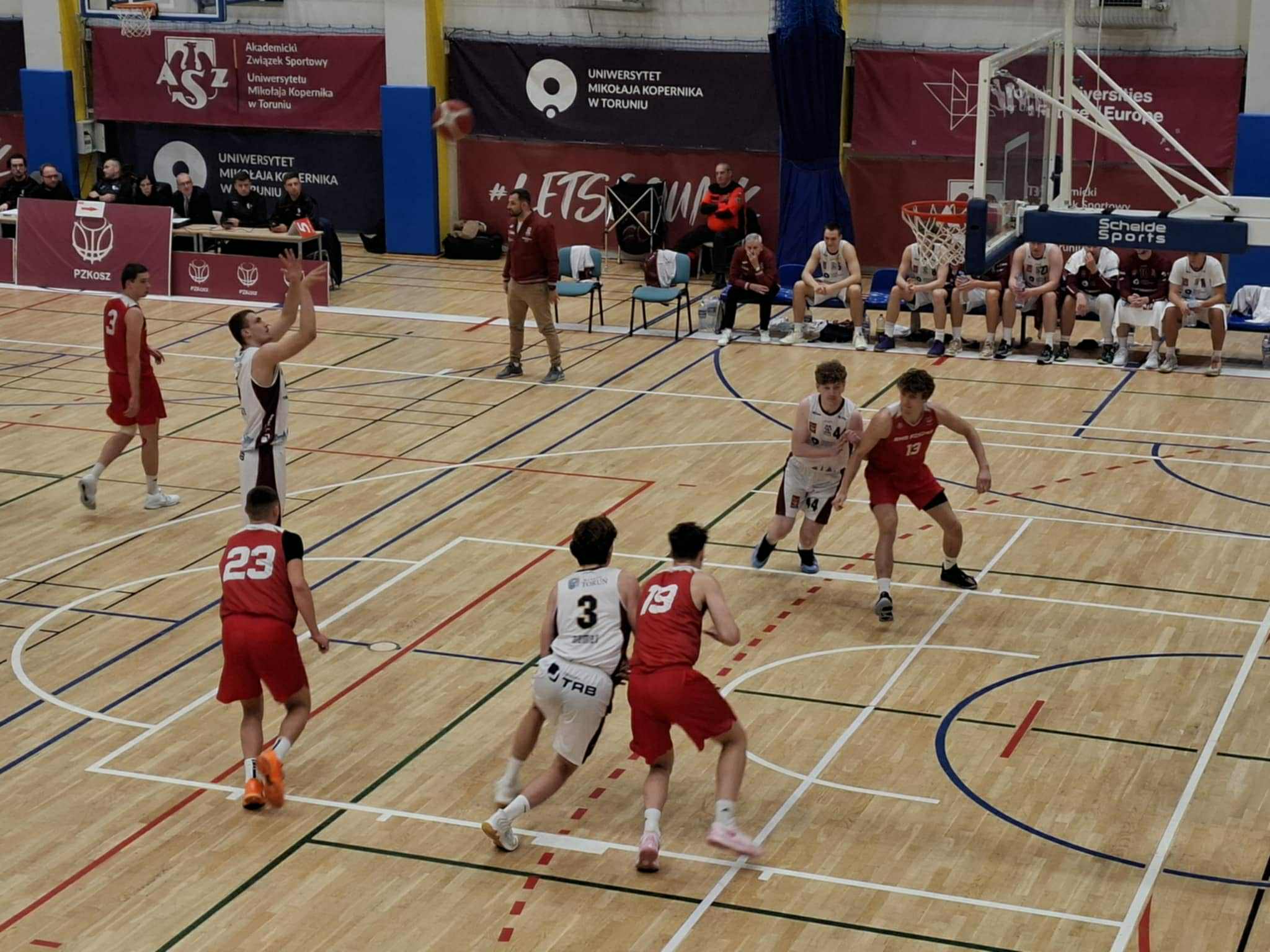 Po przerwie zrobiło się jednak nerwowo. Goście z Władysławowa złapali rytm, zaczęli trafiać z trudnych pozycji i doprowadzili do remisu 55:55. Trener gospodarzy poprosił o przerwę. Tuż po niej AZS błyskawicznie wrócił do swojej gry, odpowiedział serią punktów i odbudował prowadzenie. Trzecia kwarta zakończyła się wynikiem 71:58, a w czwartej Torunianie spokojnie dowieźli zwycięstwo i nie dali już dojść do głosu zawodnikom z Władysławowa.
