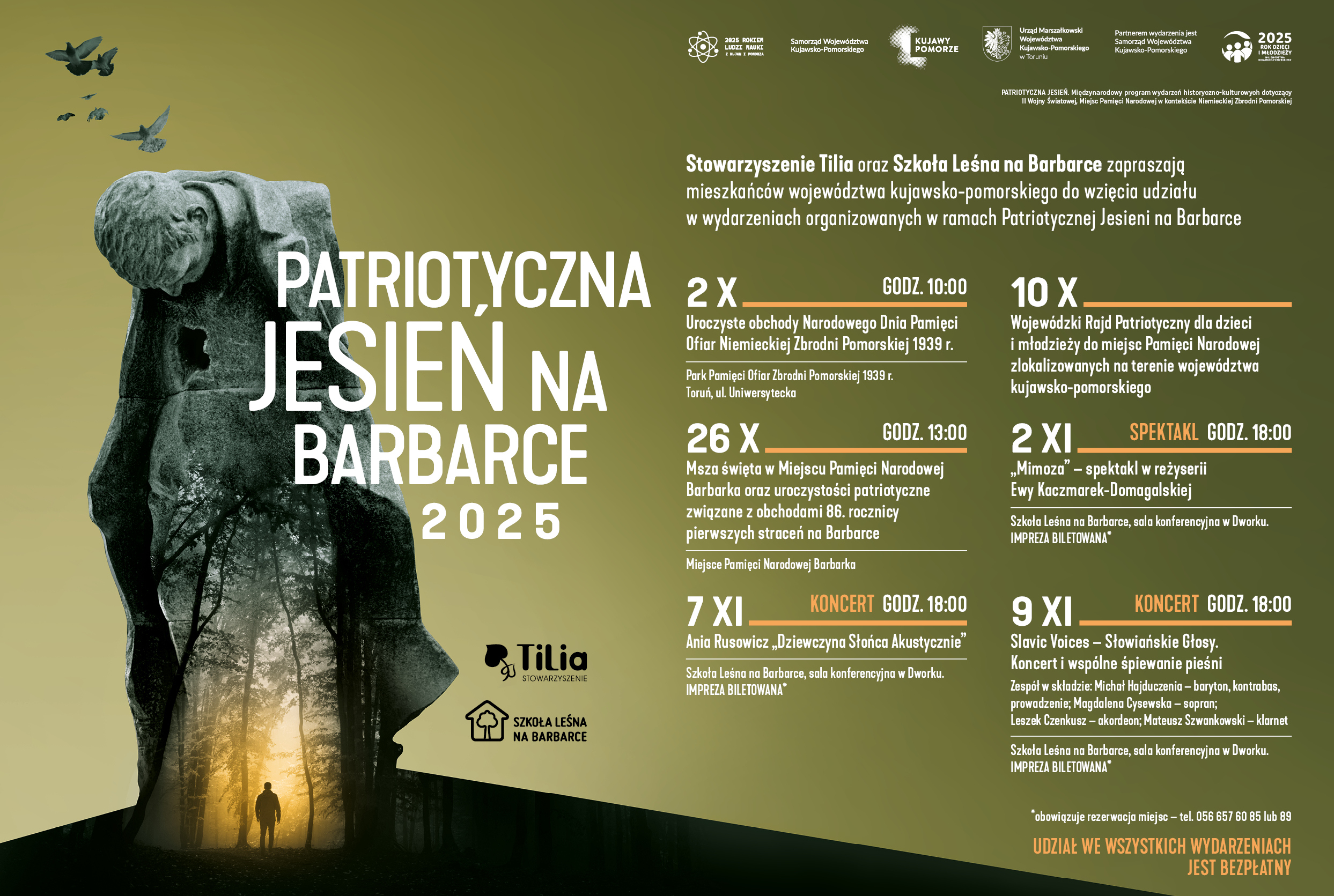Patriotyczna Jesień na Barbarce pokazuje, że historia nie musi być nudna, może żyć w muzyce, teatrze i rozmowie. Projekt udowadnia, że pamięć o przeszłości może iść w parze z radością, wspólnotą i kulturą. Wszystkie wydarzenia są finansowane z budżetu Samorządu Województwa Kujawsko-Pomorskiego, a organizatorzy zapraszają zarówno studentów, jak i rodziny oraz seniorów, do wspólnego spędzenia tej wyjątkowej jesieni.
