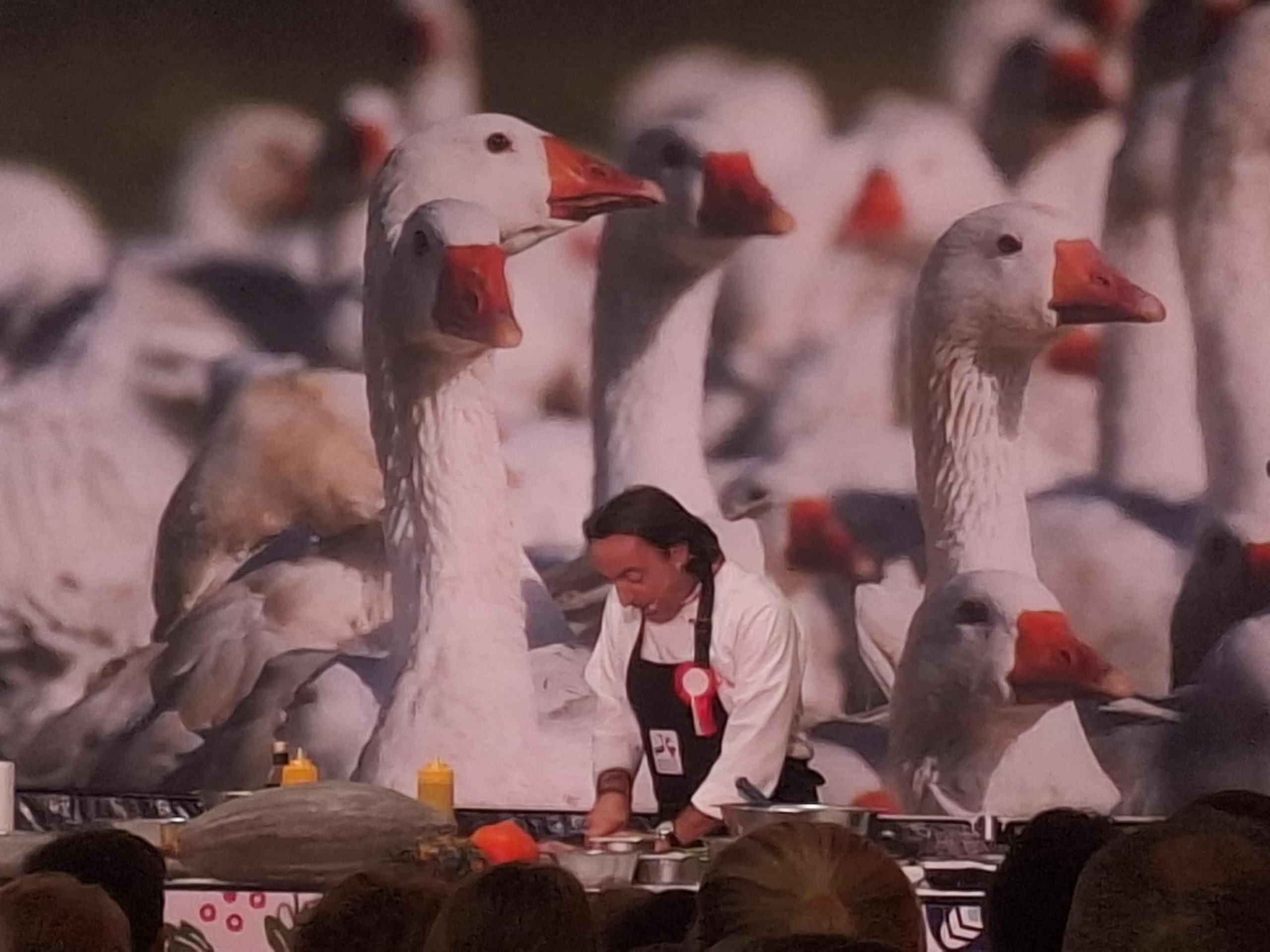 W namiocie „Gęsia Karczma” w tym roku można było podglądać przy pracy Piotra Lenarta, Marietę Marecką, Sebastiana Olmę oraz Michela Moran. Przez dwa dni prezentowali autorskie przepisy na potrawy z gęsiną. W trakcie gotowania rozmawiali z widownią i starali się odpowiadać na nurtujące widzów pytania. Mogliśmy dowiedzieć się na przykład, że Michel Moran, juror Masterchefa, jako swoją pierwszą potrawę przyrządził ptysie z karmelem, nie lubi robić ciast, bardzo rzadko gotuje w domu, a jego ulubiony deser to czekolada. Zgromadzeni mogli także spróbować przygotowywanych potraw. Ci, którym nie udało się odebrać wejściówki wciąż mogli oglądać relację na żywo lub na telebimach rozstawionych na terenie jarmarku.