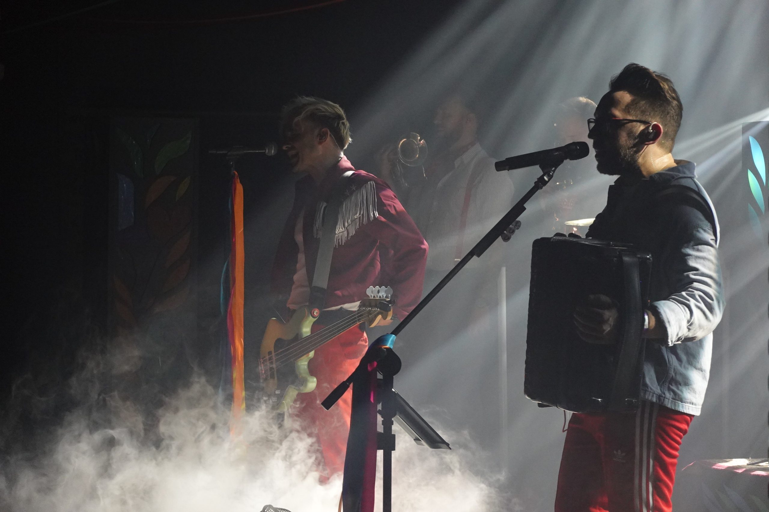 W trakcie koncertu publiczność miała okazję usłyszeć najbardziej znane utwory zespołu. Jednym z najgłośniej śpiewanych momentów były „Skrzydlate ręce”, podczas których widownia dosłownie zagłuszała wokalistę swoim chóralnym śpiewem. Podobnie było przy utworze „Radio Hello”, który wprowadził na sali atmosferę wspólnej zabawy, oraz przy „Lili”, której rytmiczna, folkowa energia sprawiła, że cała sala bujała się w rytm muzyki. Najbardziej emocjonalnym punktem wieczoru było wykonanie „Kamienia z napisem Love”. Publiczność śpiewała każdy wers niemal bezbłędnie, tworząc niezwykły moment wspólnoty, który doskonale wpisuje się w temat przewodni trasy.