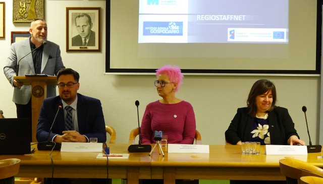 Na Wydziale Prawa i Administracji UMK zorganizowano konferencję prasową inaugurującą działalność Regiostaffnet. Podczas wydarzenia zgromadzili się przedstawiciele instytucji zaangażowanych w tę inicjatywę. Dr Jagoda Jaskólska, związana z Katedrą Prawa Pracy UMK, przedstawiła konkretne zadania, które będą realizowane w ramach nowego projektu.