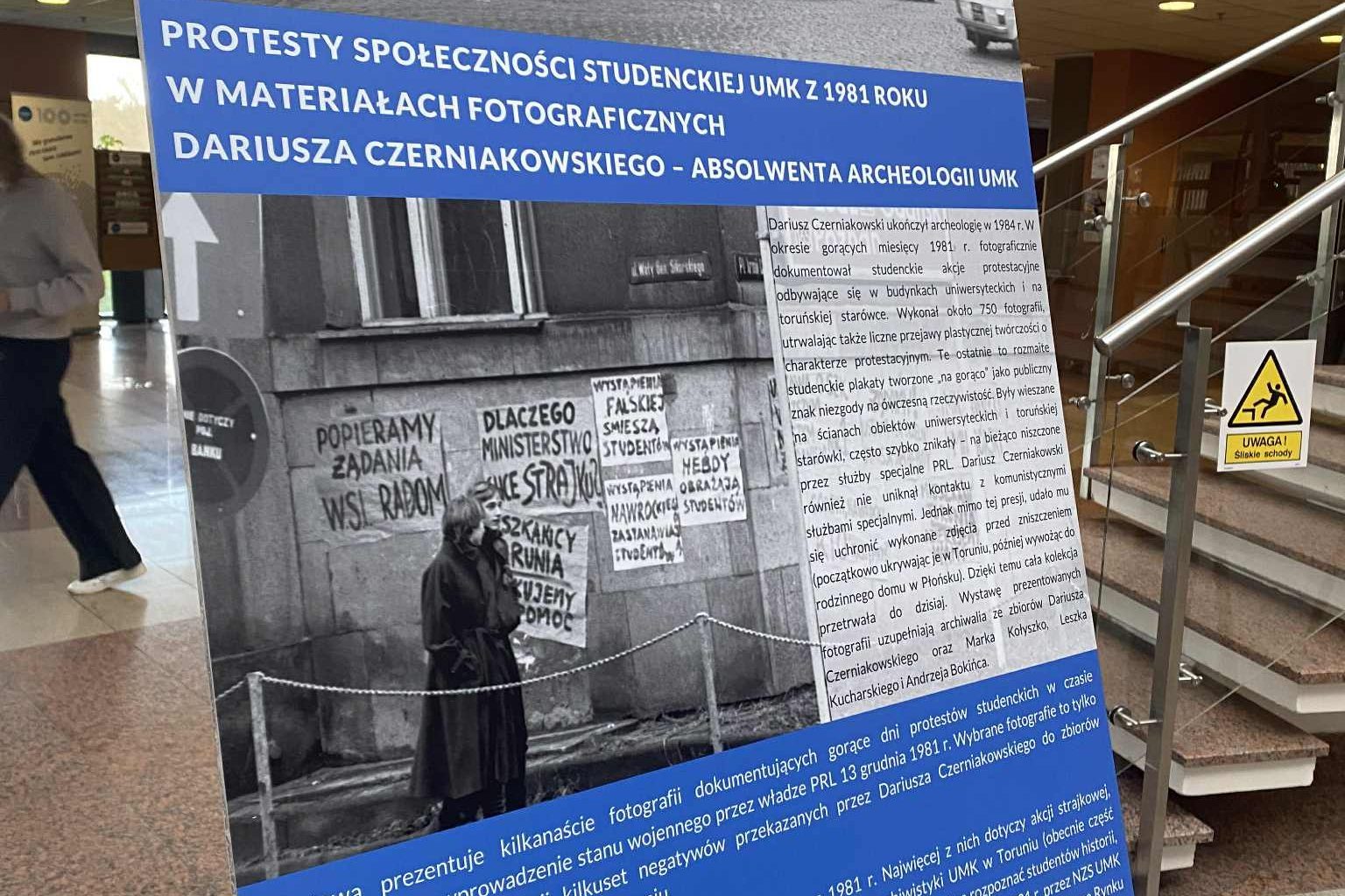 Strajki społeczności studenckiej w 1981 roku były masowym protestem solidarnościowym, domagającym się autonomii uczelni, jak i demokracji w szkolnictwie wyższym. Cały zbiór Dariusza Czerniakowskiego, uczestnika protestu i autora wystawy, posiada ponad 750 zdjęć dokumentujących strajk ówczesnych toruńskich studentów, tuż przed wprowadzeniem stanu wojennego w Polsce.