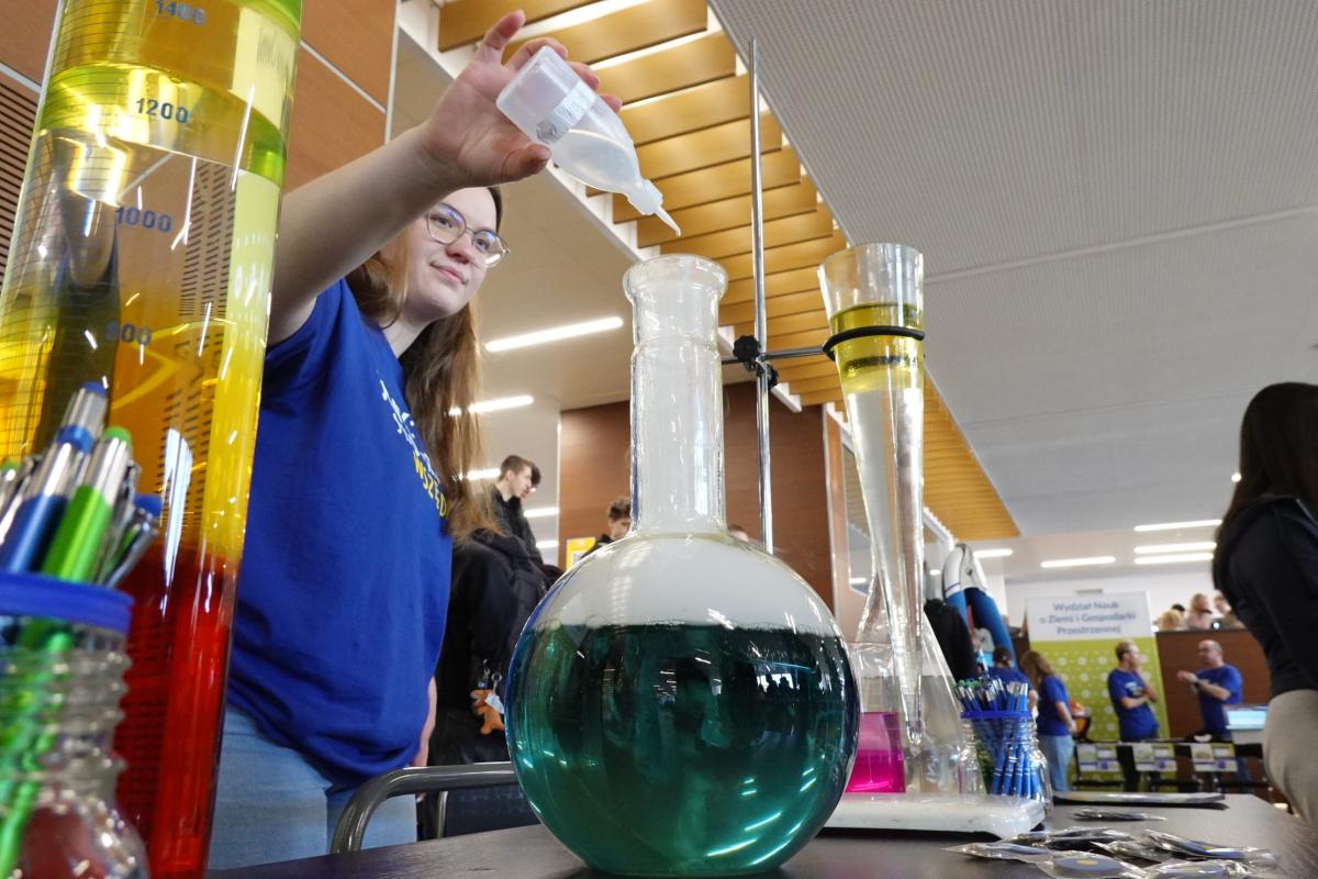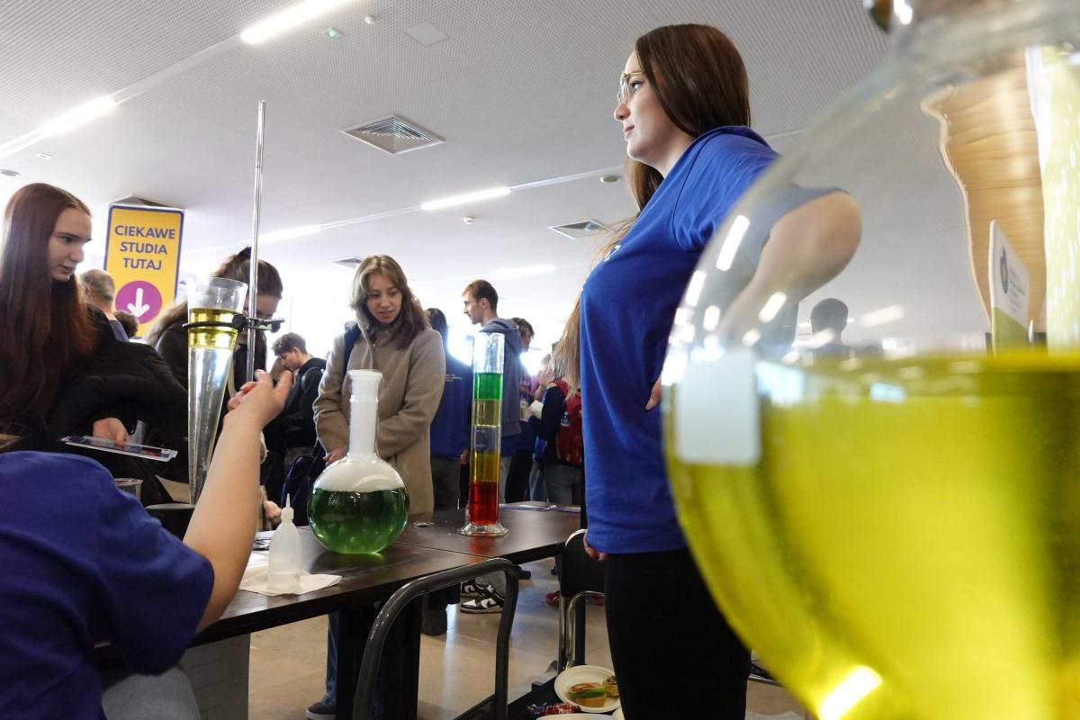 Wydział Chemii przyciągał odwiedzających kolorowym stanowiskiem. Na tym jednak się nie kończyło, ponieważ można było dowiedzieć się m.in. o ścieżkach rozwoju absolwentów kierunków chemicznych:
