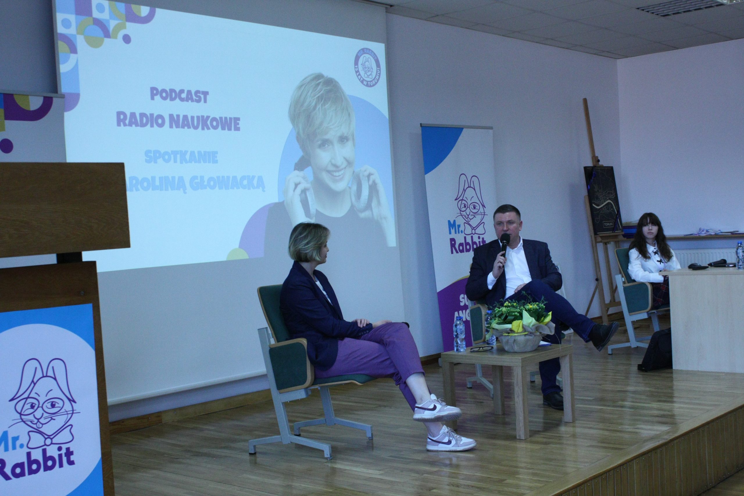 Karolina Głowacka jest doświadczoną dziennikarką, która przez wiele lat pracowała w Radiu TOK FM. Po odejściu z rozgłośni pragnęła dalej realizować swoje naukowe pasje, co poskutkowało powstaniem podcastu „Radio Naukowe”. Prowadząca przeprowadza pogłębione rozmowy z naukowcami specjalizującymi się w różnych dziedzinach naukowych, by przekazywać wiedzę szerszej publiczności w łatwej do przyswojenia formie. W trakcie spotkania Głowacka zdradziła kulisy powstania podcastu i pracy przy nim, a także podzieliła się swoją opinią na temat współczesnego środowiska naukowego.