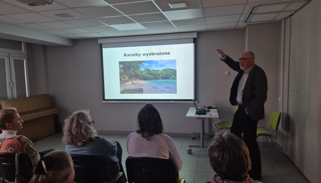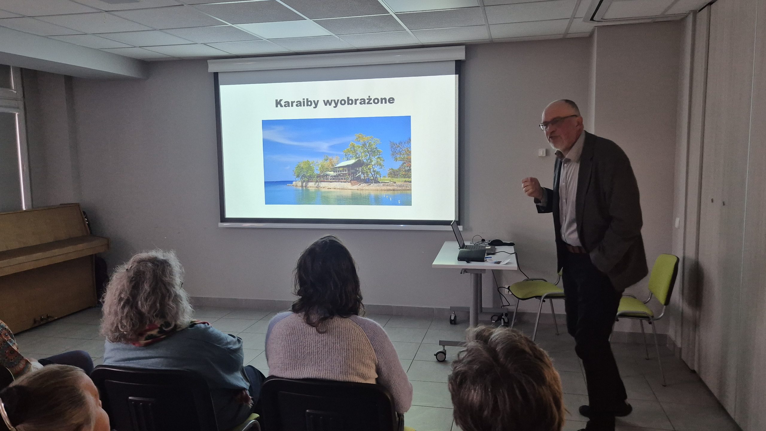 Podczas pierwszego spotkania uczestnicy przenieśli się na Karaiby. Wykład poprowadził prof. dr hab. Dariusz Brzostek, antropolog i kulturoznawca z Wydziału Humanistycznego UMK.